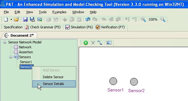 This section shows how to creat a sensor network model for simulation and verification in PAT.