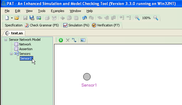 PAT will creat a sensor network model automatically, which has one sensor and the sensor is named Sensor1.