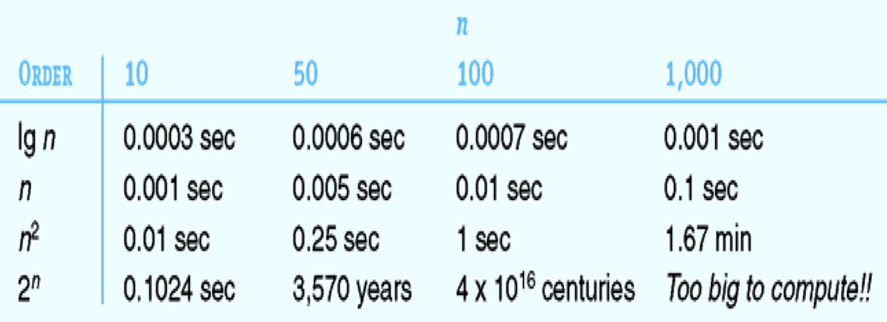 (Note: This table assumes a (slow) computer that can do 10,000 operations per second.)