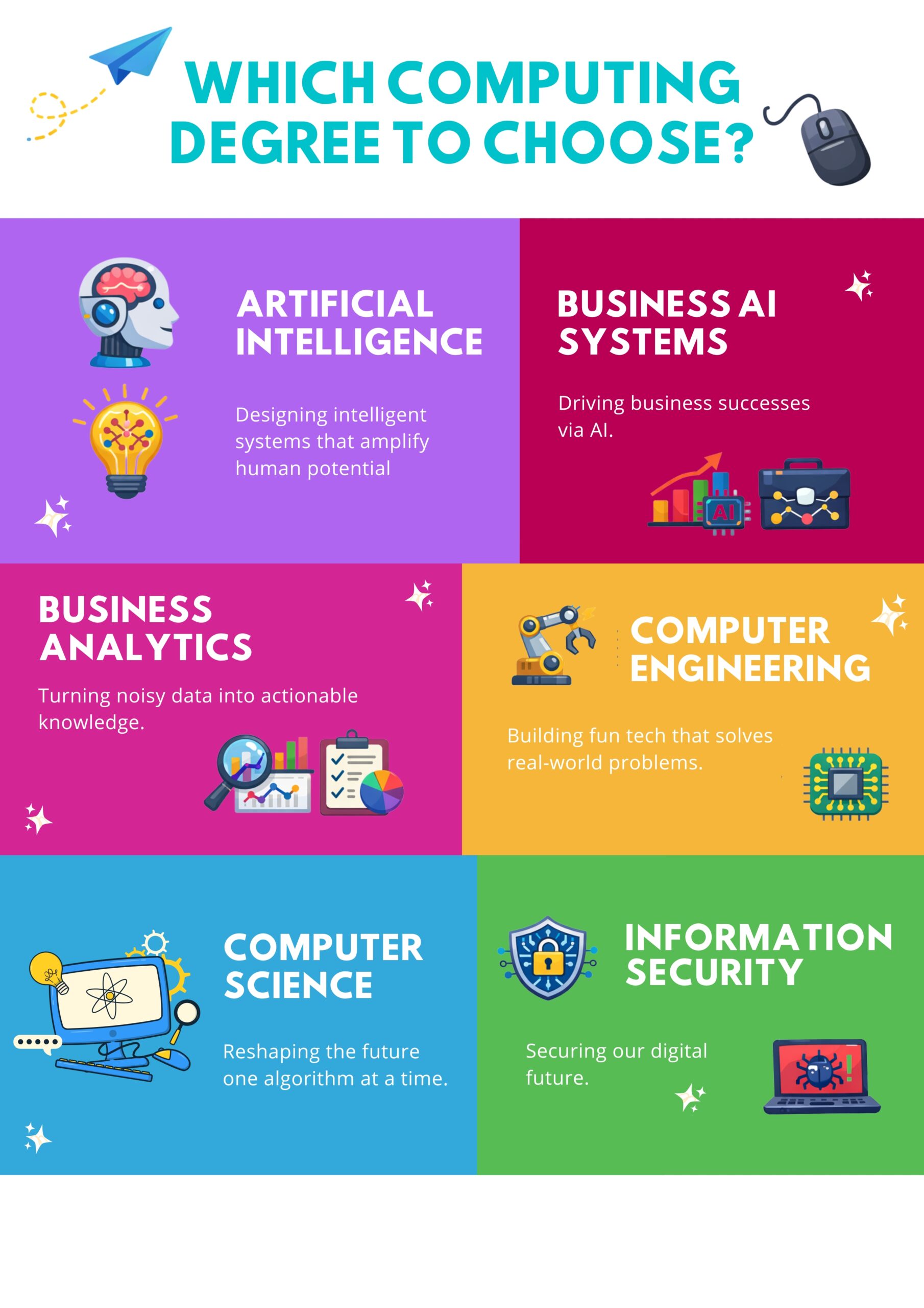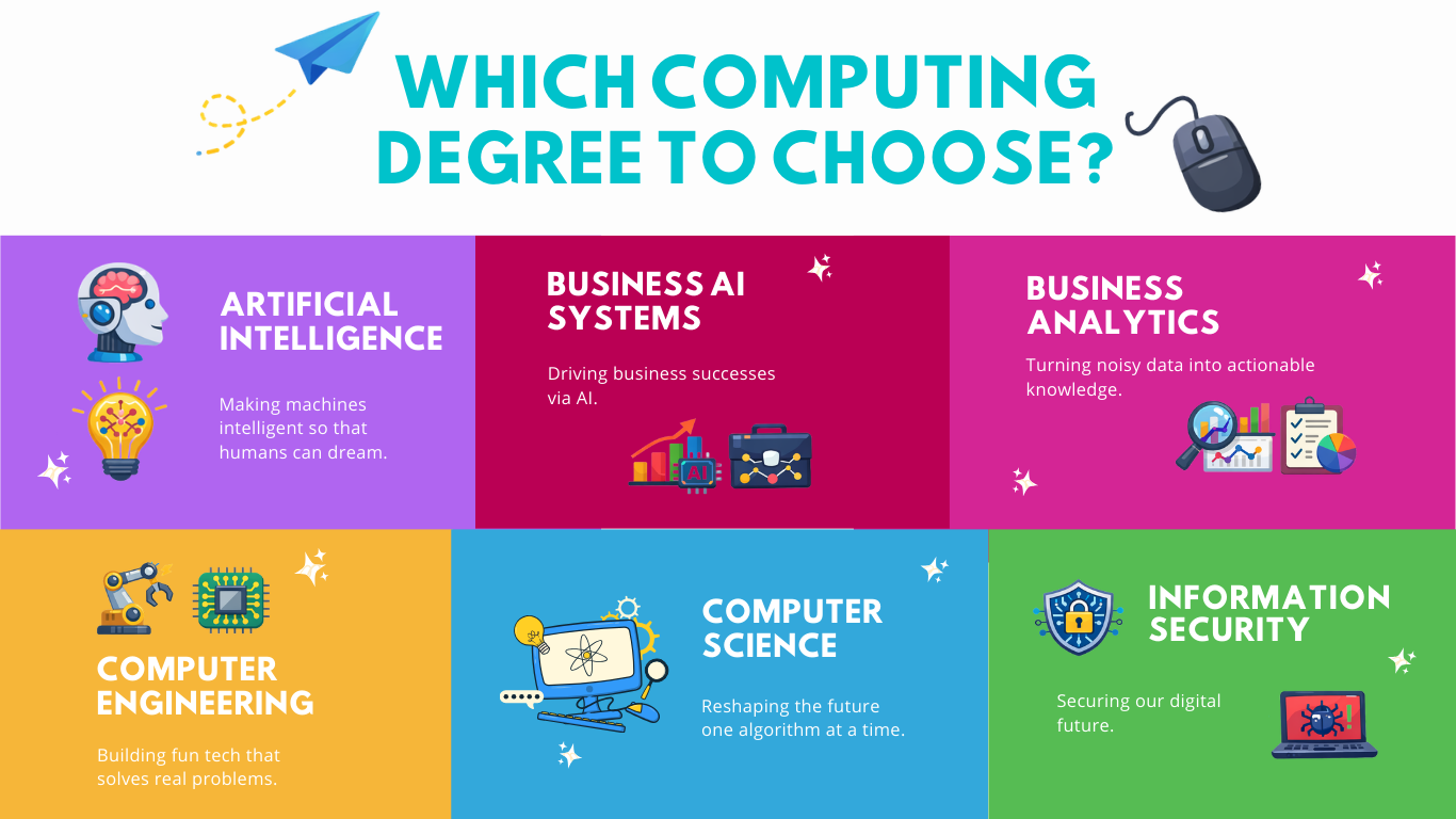 Each of our six degree programmes gives you a solid computing foundation and the skills needed to build real-world solutions.