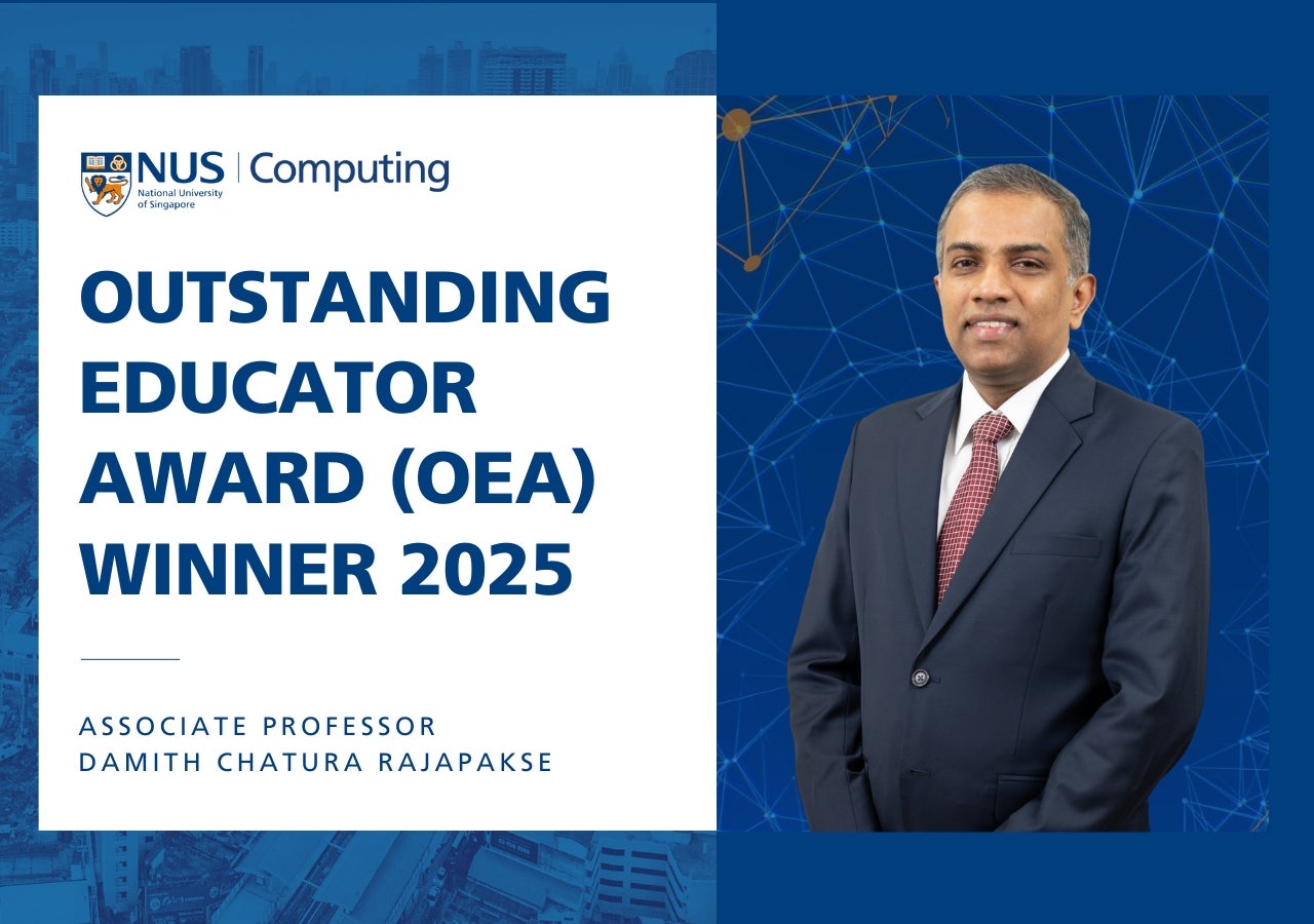 Associate Professor Damith Chatura Rajapakse from the Department of Computer Science, School of Computing, has been awarded the prestigious Outstanding Educator Award at the 2025 NUS University Awards. This accolade recognises his exceptional contributions to teaching, mentorship, and educational innovation at the National University of Singapore.