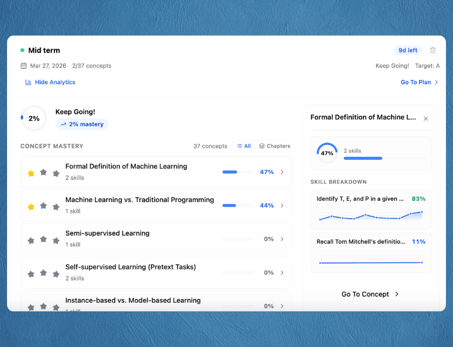 The platform they built together takes a student’s lecture materials and generates a structured roadmap through them – breaking content into concepts, explaining each one and how it connects to the next, and running short quizzes before the student moves forward. Everything is grounded in the student’s own notes, with an AI tutor operating in the same context throughout.
