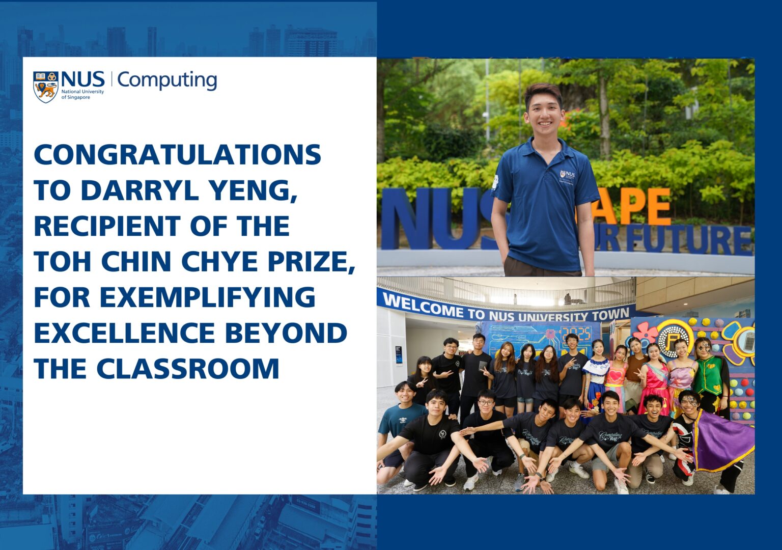 Now a Year 2 Computer Science student at the NUS School of Computing (SoC), Darryl is the recipient of the prestigious Toh Chin Chye Prize, an award that recognises students who exemplify excellence beyond the classroom — through leadership, service, and meaningful contributions to society. Named after Singapore’s first Deputy Prime Minister, the prize honours individuals who reflect Dr Toh Chin Chye’s belief in service, integrity, and nation-building.