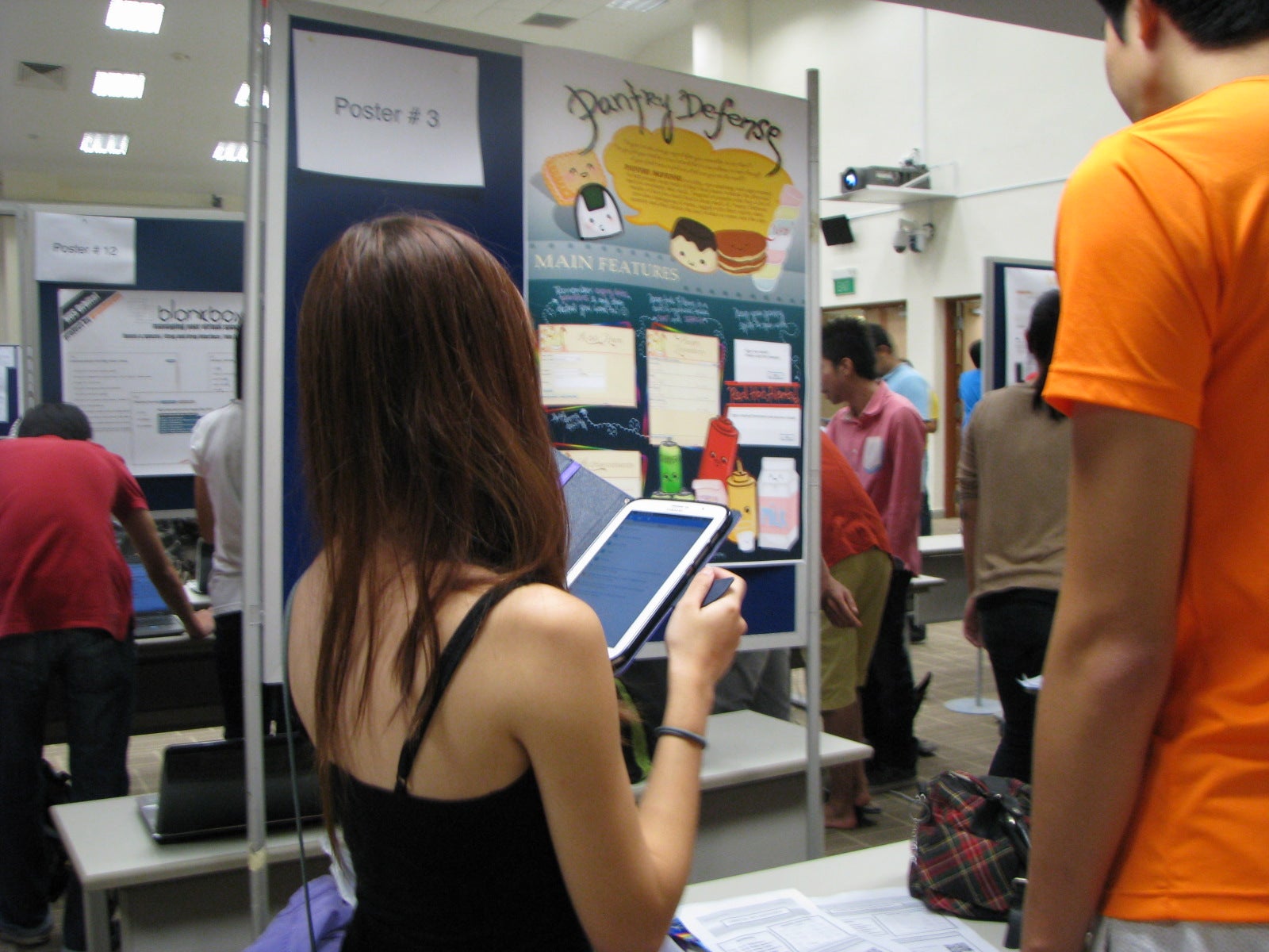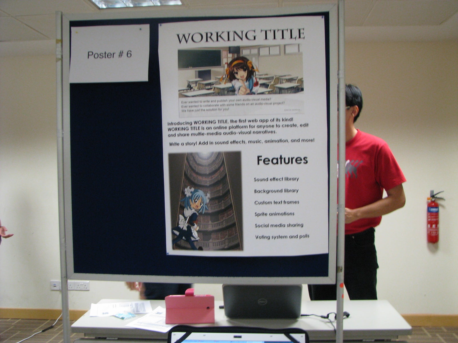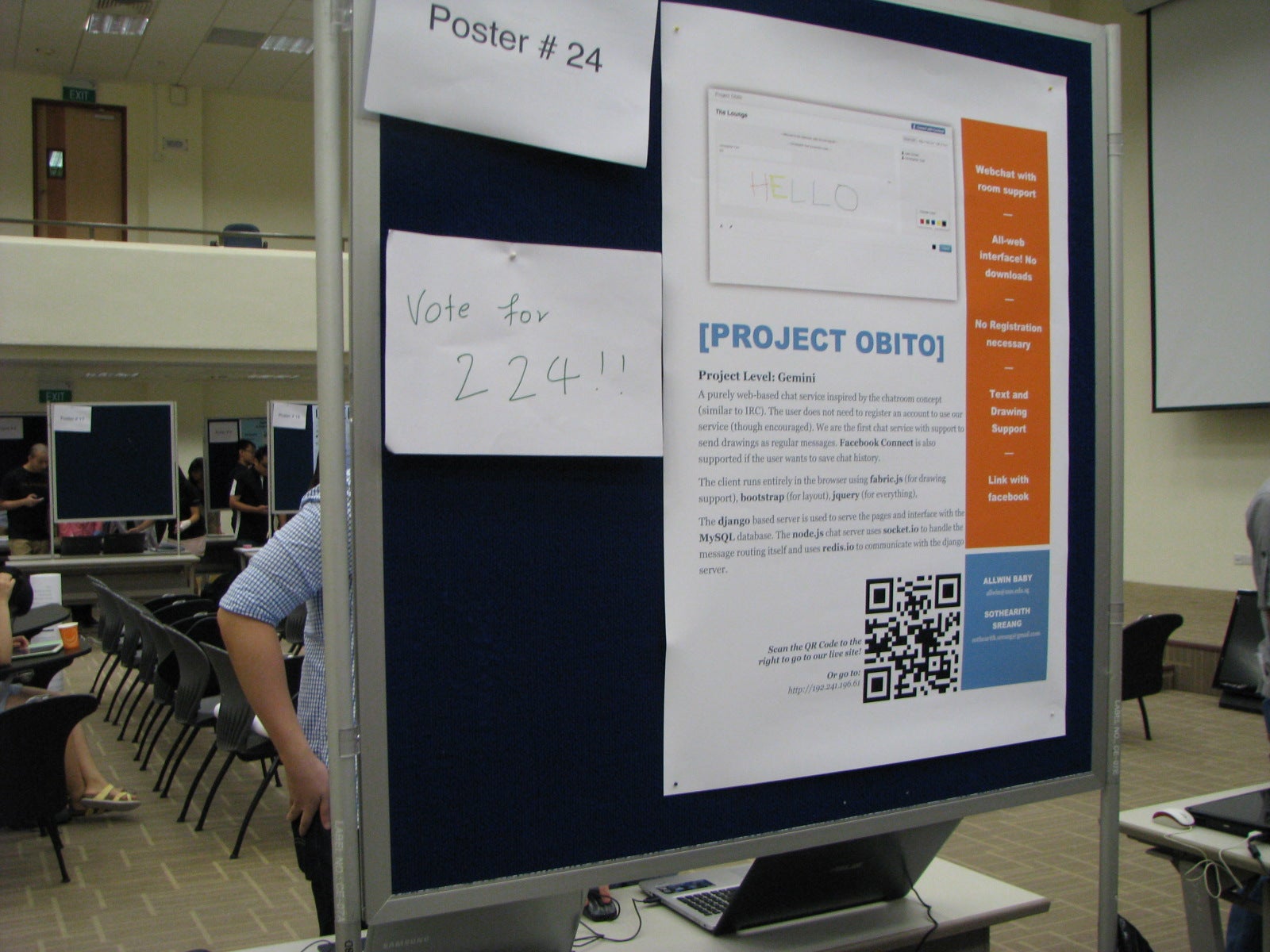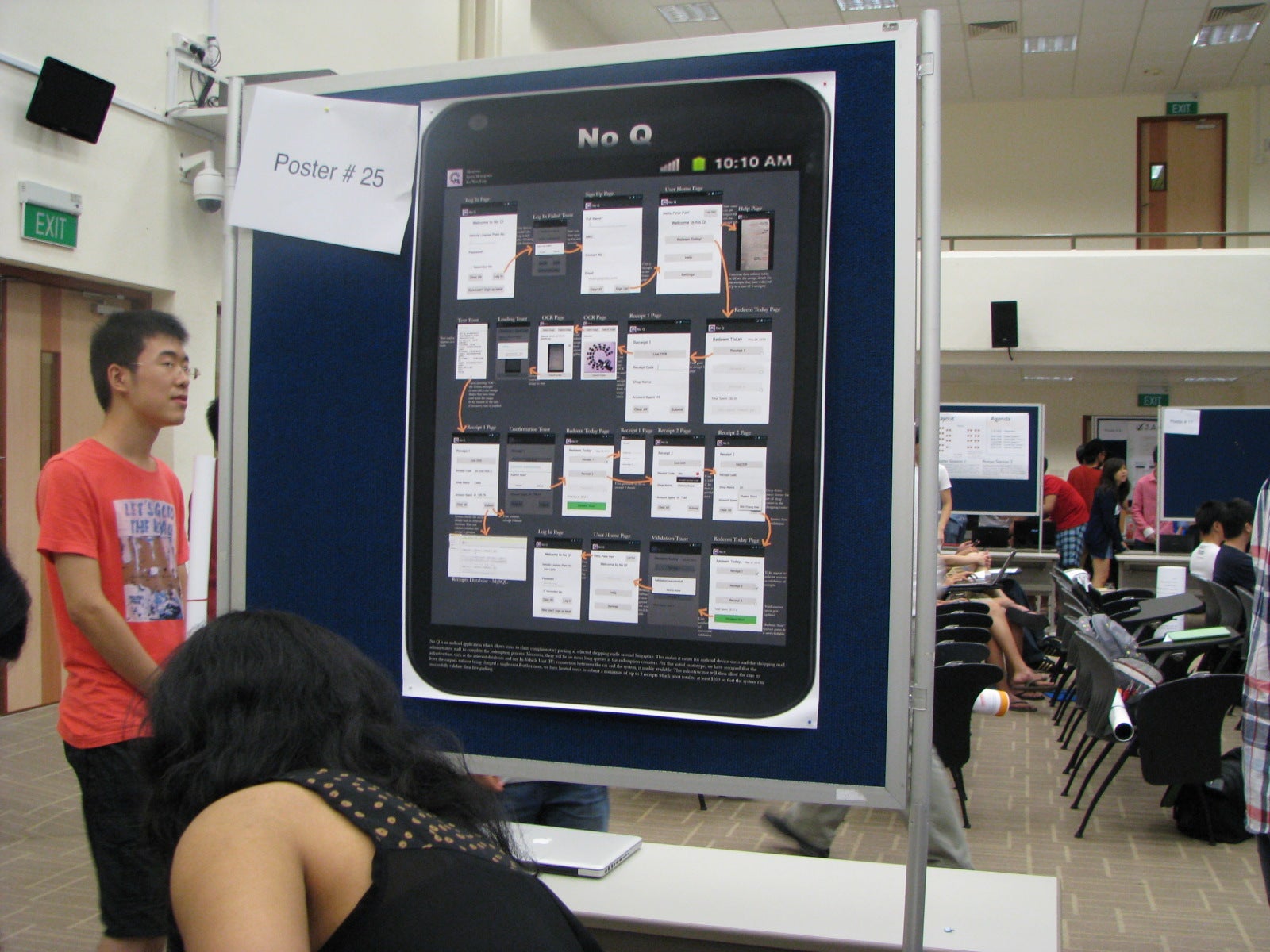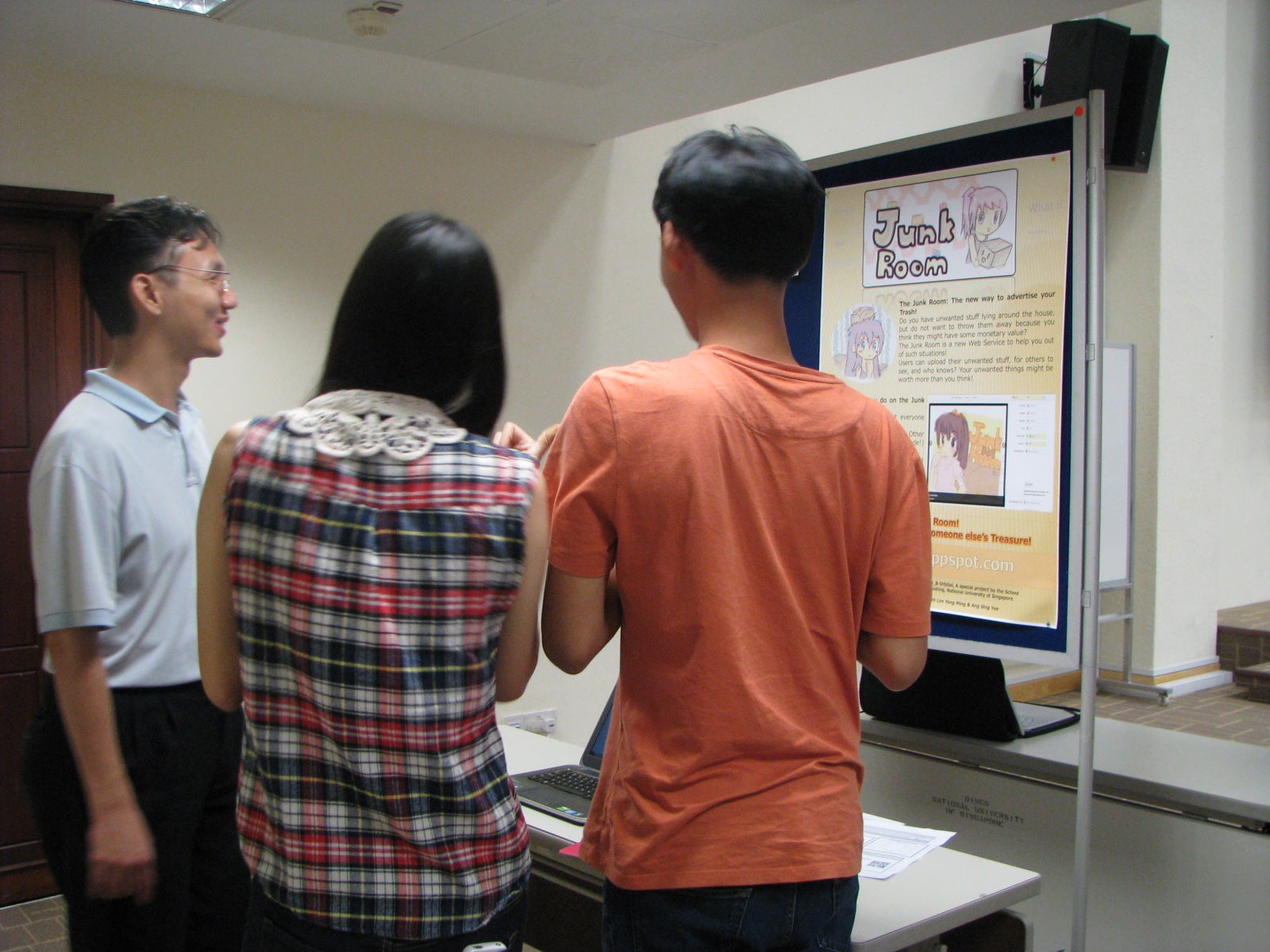 Remember that Google SG is giving away prizes to best project, where you (and us) have voting privileges to help determine the winners, so whatever you want to do to curry favor with your peers is a-ok (within NUS policy, of course). You’ll find that marketing is a very big key for technology acceptance in the real world, anyways. You can check out similar poster sessions at the STePS events, done by your seniors: