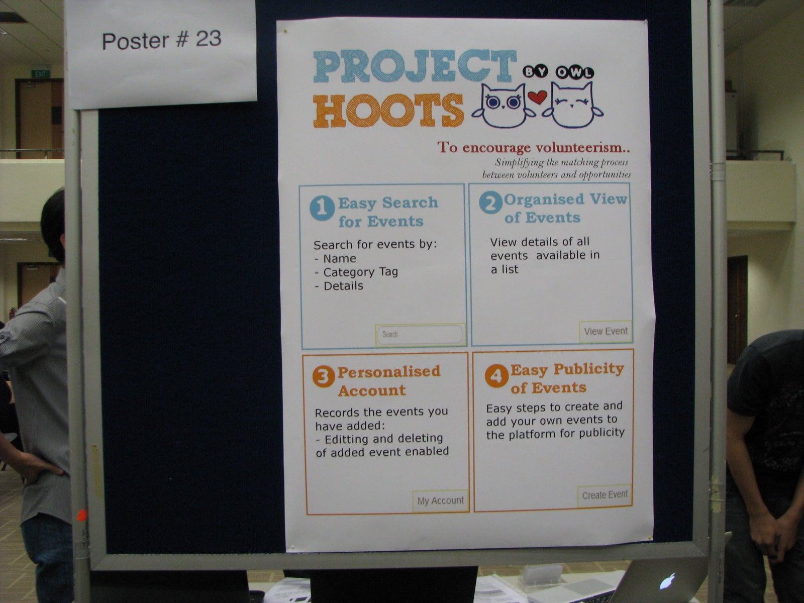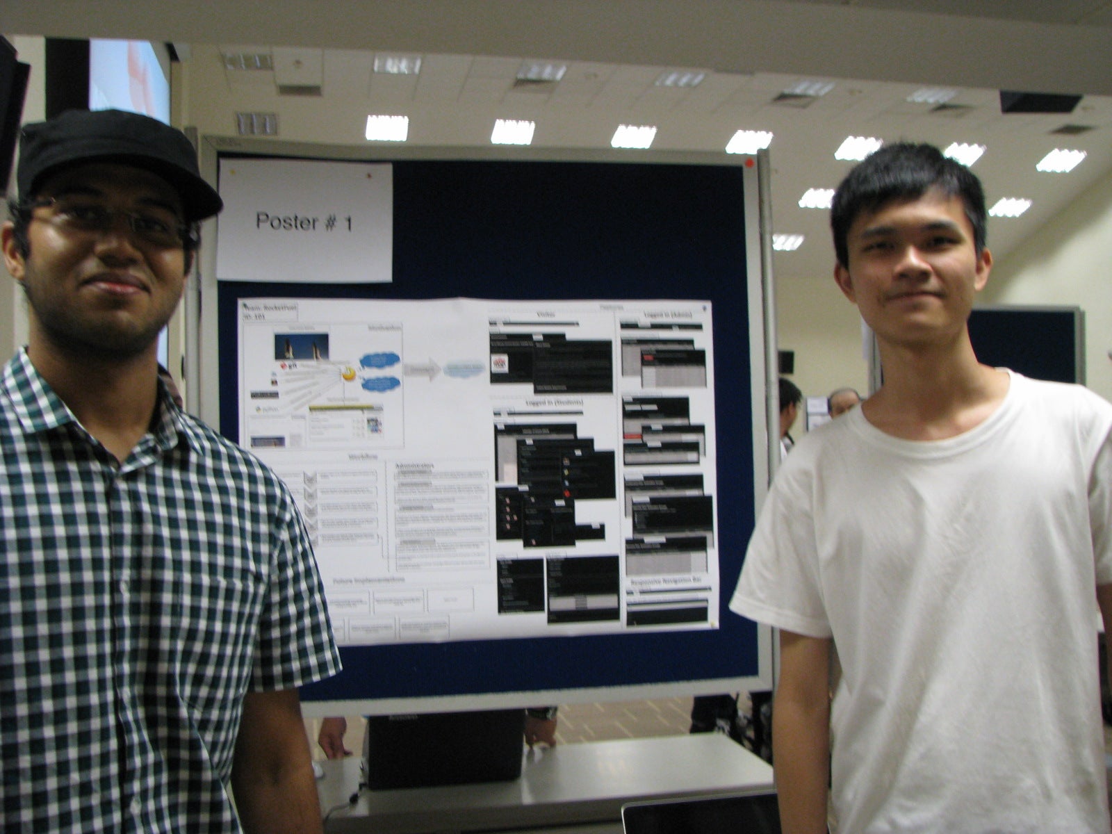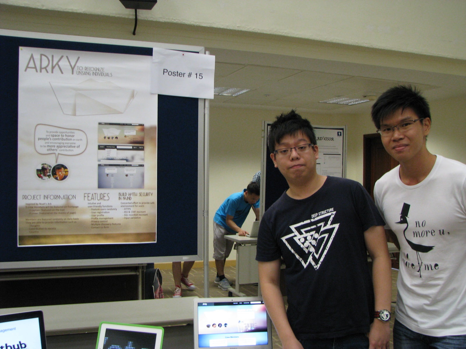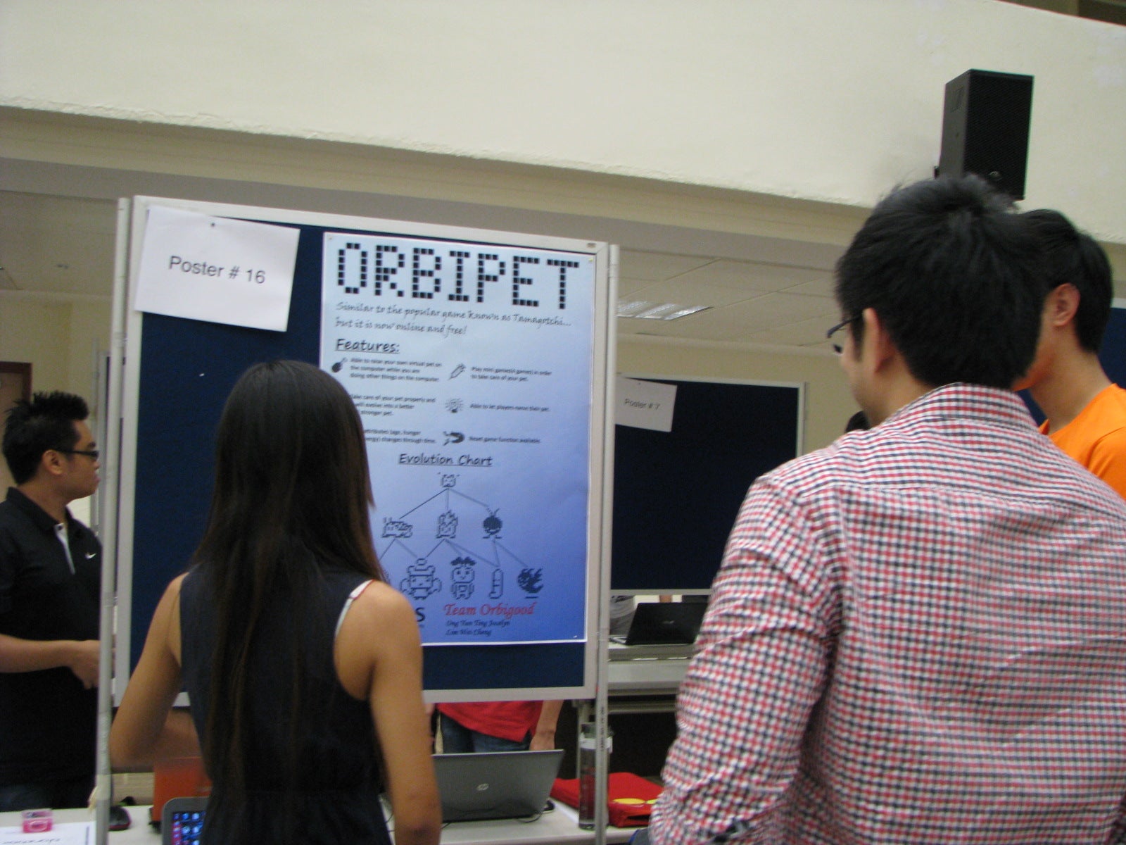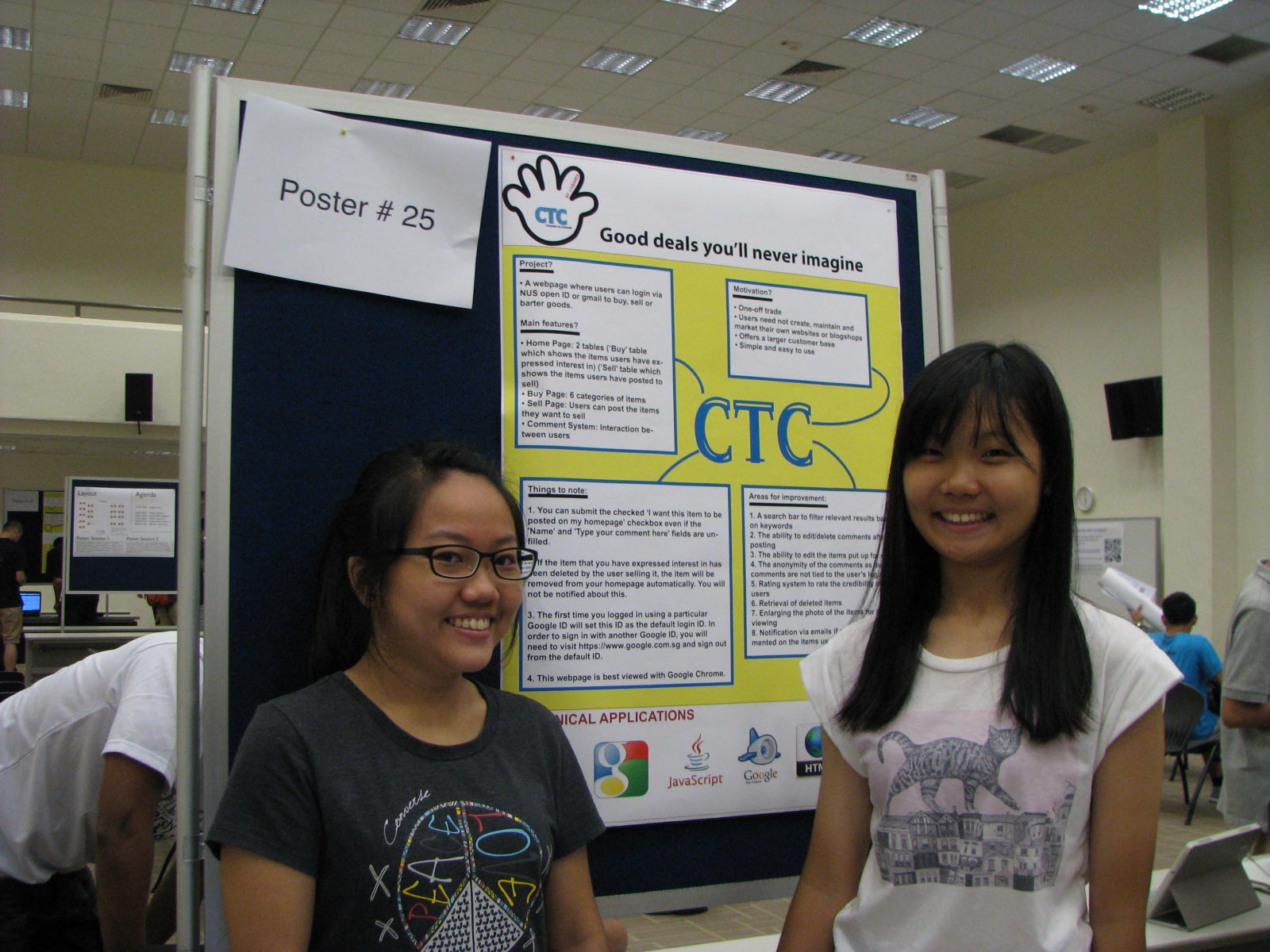 Remember that Google SG is giving away prizes to best project, where you (and us) have voting privileges to help determine the winners, so whatever you want to do to curry favor with your peers is a-ok (within NUS policy, of course). You’ll find that marketing is a very big key for technology acceptance in the real world, anyways. You can check out similar poster sessions at the STePS events, done by your seniors: