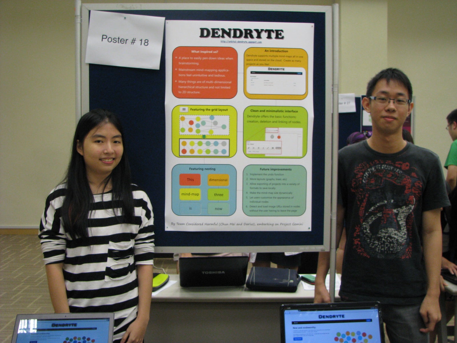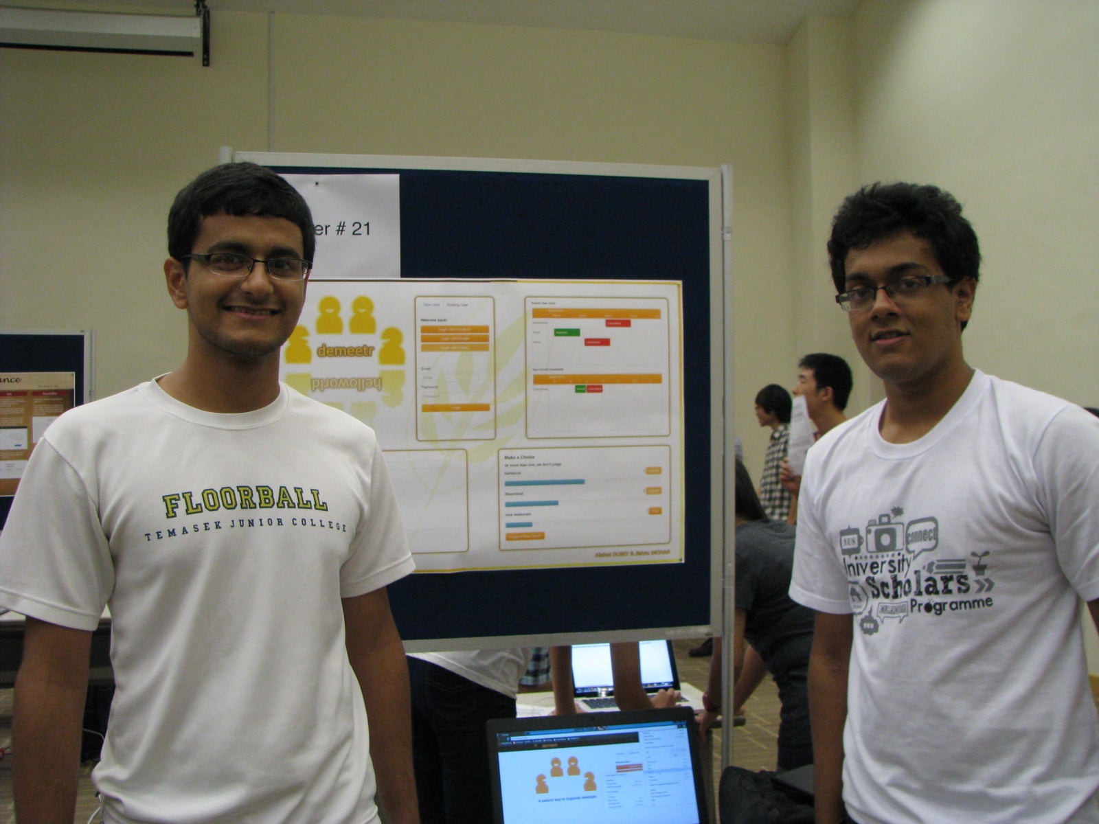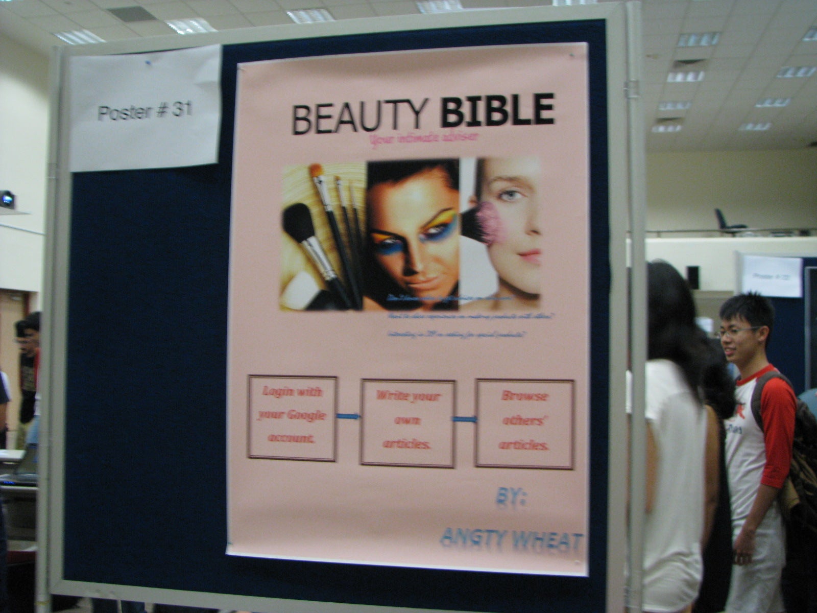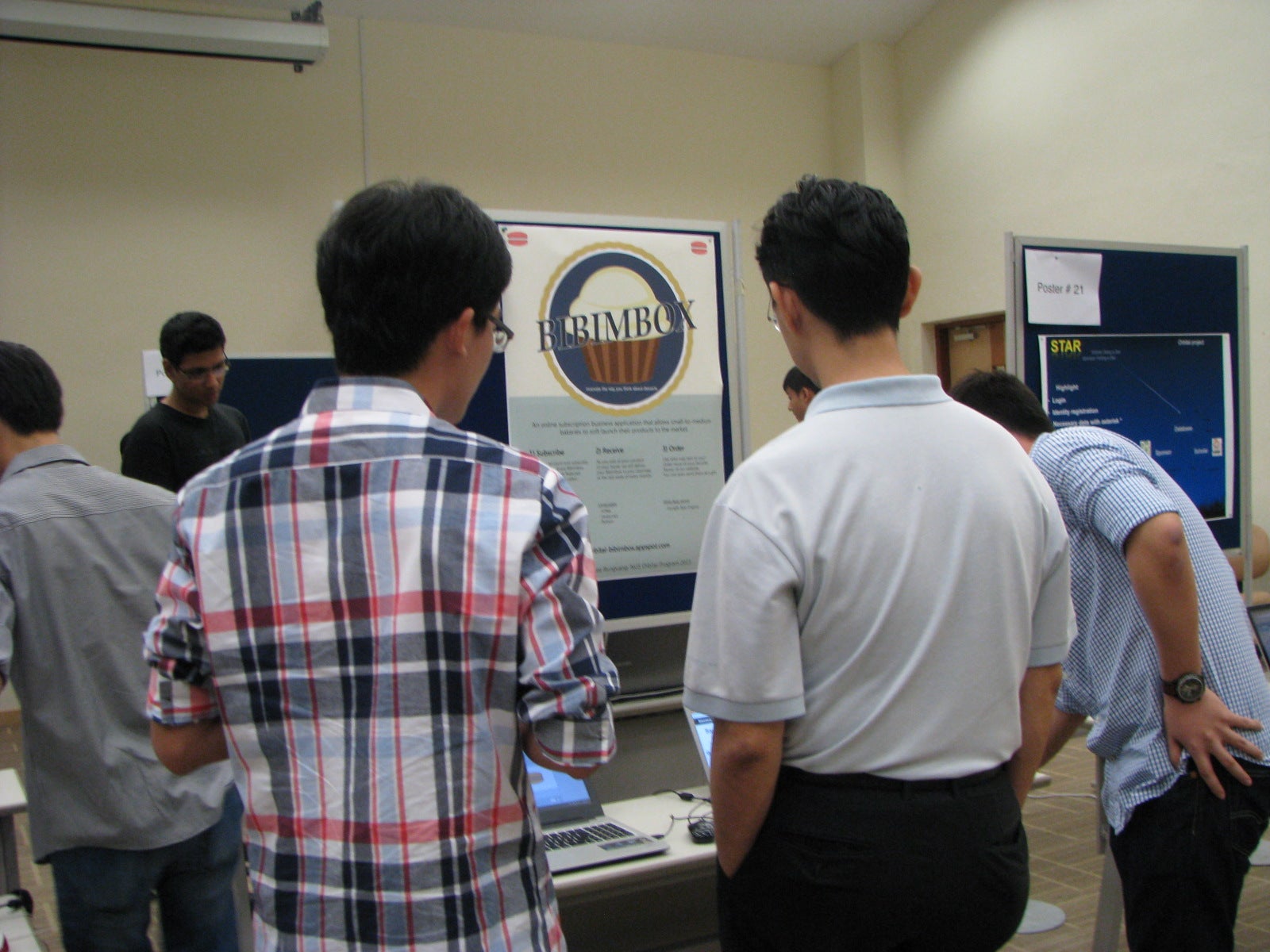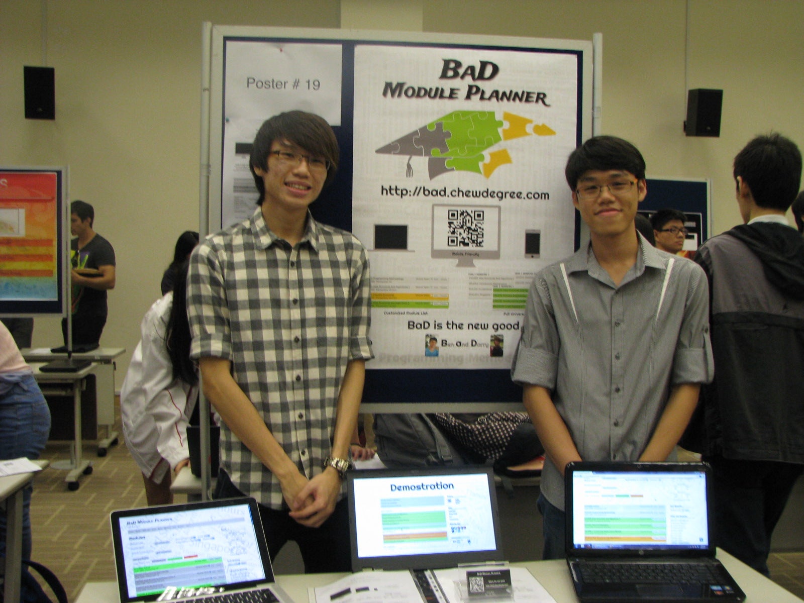 Remember that Google SG is giving away prizes to best project, where you (and us) have voting privileges to help determine the winners, so whatever you want to do to curry favor with your peers is a-ok (within NUS policy, of course). You’ll find that marketing is a very big key for technology acceptance in the real world, anyways. You can check out similar poster sessions at the STePS events, done by your seniors: