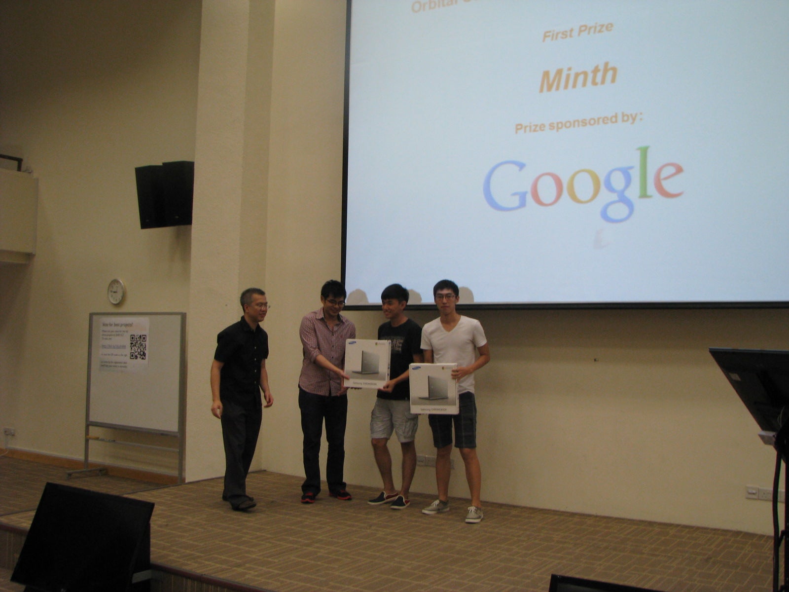 A: Actually, you’ve already won the best prize of all — self-confidence and the ability to find and use technical information on the web to accomplish tasks. But since you asked: Google has sponsored prizes for the top three teams. Min has checked them out and they are ** n i c e **. Up your game and work on your soft skills to best promote your project to your peers and to the invitees that will attend the Splashdown event.
