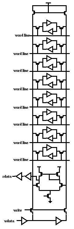3. The 8 word deep stack was achieved by stacking up the 6-T RAM cell