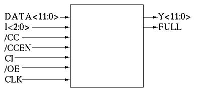 The 12-bit output Y of the chip is piped through a tristate buffer and controlled by an input /OE. This allows the outputs to be connected directly to a system bus if desired. Instructions can be repeated by disabling CI and preventing the Program Counter from incrementing. Since the stack has limited capacity, the chip can only support up to 8 levels of subroutine branching. When the stack is full, /FULL is asserted. Further attempts to push data onto the stack will cause the stack to wrap around, overwriting the earliest piece of data; in the same manner, popping an empty stack will place non-meaningful data on the Y outputs but leave the stack pointer in an unspecified position. In general, users should not push more than eight pieces of data onto the stack or try to pop and empty stack; there are no guarantees on the behavior of the stack once the abstraction is violated.