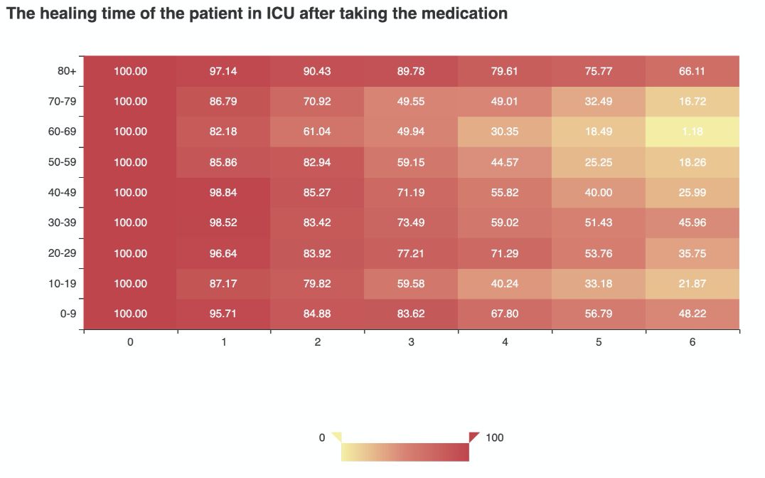 Figure 1: Heat map for the healing time of the patient in ICU after taking the medication