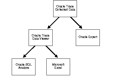 Among the many advantages of using Oracle Trace is the integration of Oracle Trace with other applications. You can use Oracle Trace data collected for the Oracle server in the following applications, as shown in Figure 13-1: