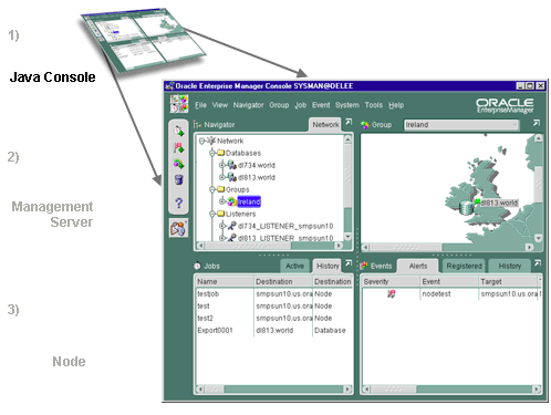 However you run the Console, it relies on the Oracle Management Server and the Oracle Intelligent Agent to perform system management tasks.