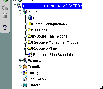 The Resource Plans folder lists objects that represent resource plans, which are ways of allocating resources among consumer groups. Resource plans contain directives that specify the resources to be given to each group and can be specified in hierarchical fashion using subplans.