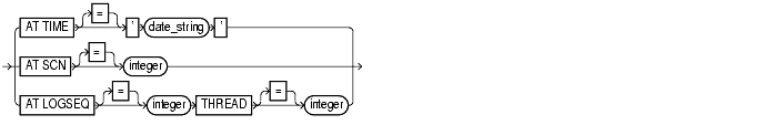 specifies a point in time as a time, an SCN, or a log sequence number. |