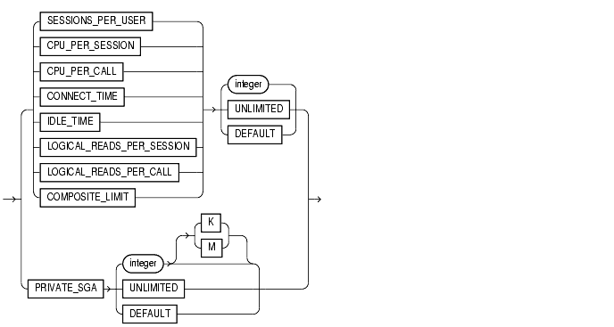 If the engineer profile does not currently define a limit for SESSIONS_PER_USER, the above statement adds the limit of 5 to the profile. If the profile already defines a limit, the above statement redefines it to 5. Any user assigned the engineer profile is subsequently limited to 5 concurrent sessions.