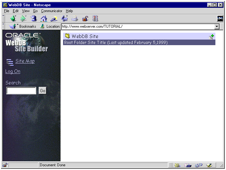 A WebDB site is divided into folders. A folder is a collection of related items, including files, URLs of other Web pages, and WebDB components. You can enable users to log on to the site and thus control the content displayed to them: