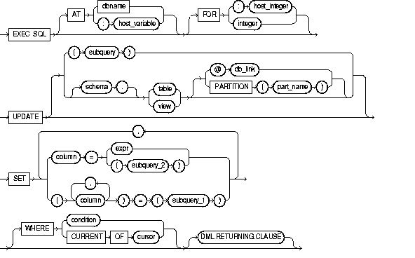 | FOR :host_integer | Limits the number of times the UPDATE statement is executed if the SET and WHERE clauses contain array host variables. If you omit this clause, Oracle9i executes the statement once for each component of the smallest array. |