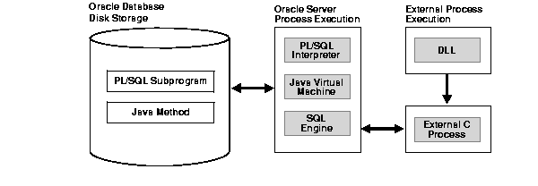Until Oracle 8.0, the Oracle RDBMS supported SQL and the stored procedure language PL/SQL. In Oracle 8.0, PL/SQL introduced external procedures, which allowed the capability of writing C functions as PL/SQL bodies. These C functions are callable directly from PL/SQL, and from SQL through PL/SQL procedure calls. With 8.1, Oracle provides a special-purpose interface, the call specification, that lets you call external procedures from other languages. While this service is designed for intercommunication between SQL, PL/SQL, C, and Java, it is accessible from any base language that can call these languages. For example, your procedure can be written in a language other than Java or C and still be usable by SQL or PL/SQL, as long as your procedure is callable by C. Therefore, if you have a candidate C++ procedure, you would use a C++ extern "C" statement in that procedure to make it callable by C.
