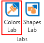 The Colors Lab allows you to easily apply colors to text and shapes in your presentation, as well as find sets of matching colors to use. To access it, just click the Colors Lab button on the ribbon: